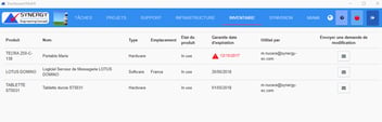 Vous pouvez consulter l'inventaire de vos actifs informatiques qui ont été saisis sous le système SVHD. Cette fonctionnalité nous permet de tracer les garanties et les tickets associés aux actifs informatiques.